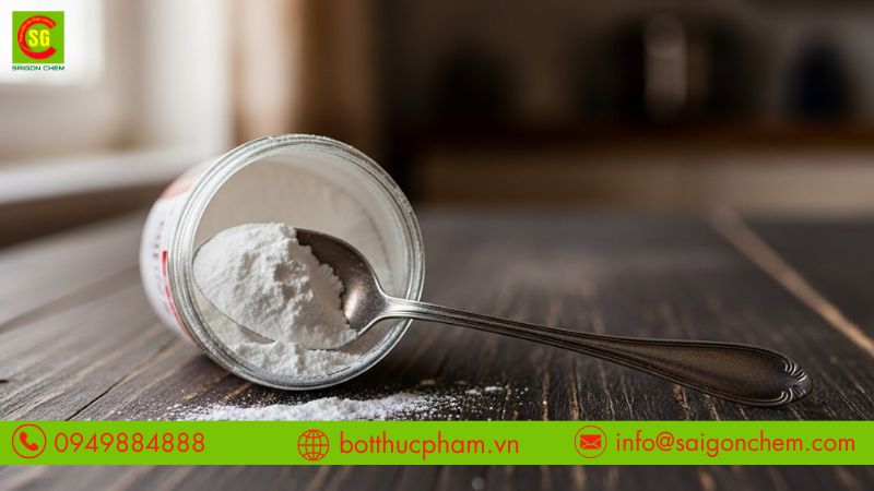 Khi gặp nhiệt, nguyên liệu sẽ phân hủy thành CO₂ giúp tạo lỗ khí nhỏ và đều. Nhờ vậy, bánh sẽ nhẹ, mềm, ruột rỗng đẹp mắt – đặc biệt quan trọng với các món chiên.